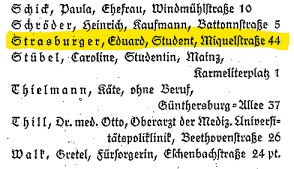 Eduard H. Strasburger ist bis Herbst 1934 bei Prof. Albert Kühn als Assistent an der Universität Göttingen tätig gewesen, durfte aufgrund seiner jüdischen Vorfahren aber nicht mehr habilitieren. Prof. Kühn schrieb 1957 zu Strasburgers Forschungen: "Alle Arbeiten Dr. Strasburgers zeichnen sich durch Überlegung und Gründlichkeit aus. Wenn nicht politische Hemmungen bestanden hätten, wäre ihm bestimmt der Eintritt in die akademische Laufbahn offen gestanden, und er hätte Aussicht gehabt, darin fortzuschreiten."