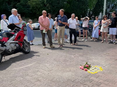 On behalf of the section, board member Frank Schumann paid tribute to the commitment of mountaineer Ernst Meissinger to the former association. Schumann described his expulsion and the section's collaboration with the Nazi regime: "They wanted to save the association. To do so, they sacrificed their loyalty towards the Jewish members." He underlined that today, the section is confronting its past, also by means of the "Spurensuche" . This should also be understood as a sign for the present, in which right-wing extremism, according to Schumann, "is considered the greatest threat to democracy." In this sense, the section shall continue its commitment and "hopefully we will be able to contribute many more stumbling stones".